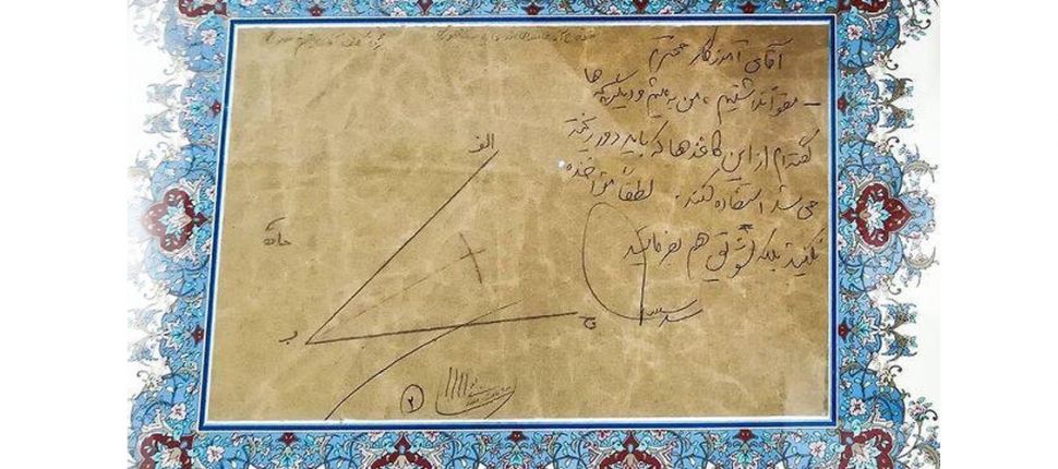 هذه الصورة التي ترونها هي صورة أحد الفروض المدرسيّة لمادّة الرسم للسيّد ميثم الخامنئيّ (نجل الإمام القائد). حيث طلب الأستاذ من التلاميذ أن يشتروا "كارتونة" ويرسموا عليها هذه الرسمة التي ترونها في الصورة، ويقدّموها إليه، ويجلبوها معهم إلى المدرسة. كان بين التلاميذ السيّد ميثم الخامنئيّ. وكانت أيّام حرب، وثمّة نقصٌ في الأدوات والكارتون، لذلك يبدو أنّ الإمام الخامنئيّ -الذي كان رئيساً للجمهوريّة حينها- فتح كيساً كارتونيّاً يُستخدم في شراء الأغراض، وأعطاه لابنه ميثم، لكي يرسم عليه، وكتب للأستاذ هذه العبارة:
