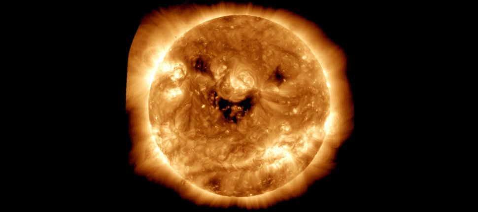 نشرت وكالة الفضاء الأمريكيّة ناسا صوراً لقرص الشمس في داخله ثلاث فجوات، فبدت الشمس وكأنّها تبتسم أمام الكاميرا خلال التقاط الصور. وأشارت ناسا إلى أنّ البقع الداكنة التي تشكّل العينين والفم في الصورة تُعرف باسم الثقوب الإكليليّة، وهي مناطق مجال مغناطيسيّ مفتوحة تسمح للرياح الشمسيّة بالتدفّق إلى خارج نواة الشمس وإحداث عواصف شمسيّة. (الجزيرة)