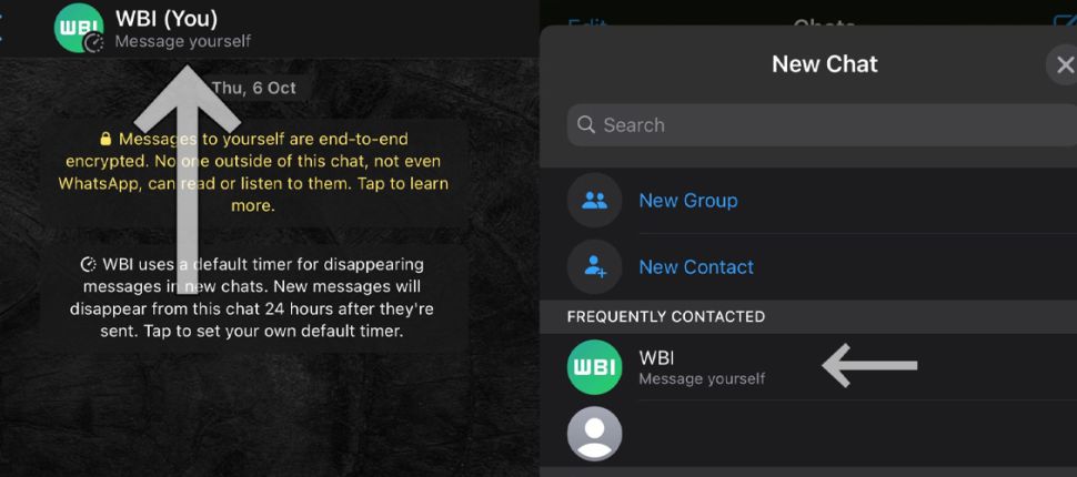 أعلنت شركة "ميتا" المالكة لـ"واتساب" عن إطلاق ميزة جديدة اسمها "راسل نفسك" تتيح لمستخدم الهواتف بنظامي أندرويد وios بدء الدردشة مع نفسه على حسابه الخاصّ بهدف الحفاظ على المعلومات وسهولة الوصول إليها في أيّ وقت، فضلاً عن كتابة ملاحظات مهمّة أو حفظ روابط إنترنت مفضّلة، وتحميل المستندات والملاحظات الصوتيّة. (الشرق تكنولوجيا)