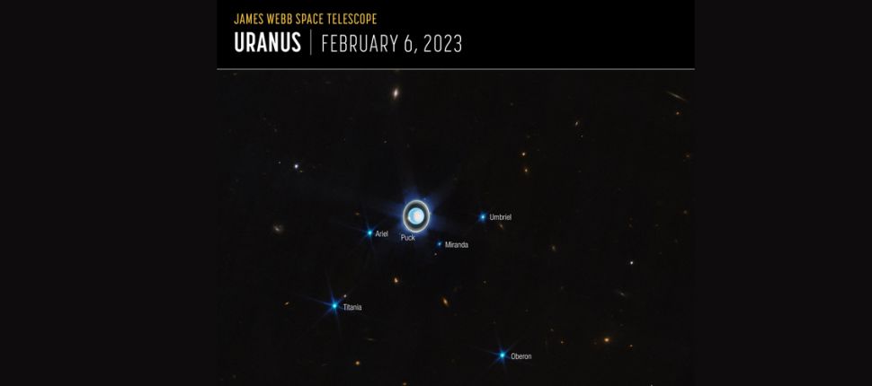 التقط التلسكوب الفضائيّ العملاق جيمس ويب صورة لكوكب أورانوس الذي يظهر لأوّل مرّة حلقاته المرئيّة والـ 27 قمراً التي تدور في فلكه. وقد تمكّن التلسكوب من التقاط 11 حلقة من أصل 13، والتي ظهرت في غاية السطوع بحيث تبدو وكأنّها تمتزج في حلقة مضيئة واحدة. (سكاي نيوز)