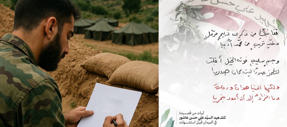 عندما فرض القصفُ اللئيمُ على بعضِ منابرِ القولِ الحكيمِ إغلاقَ أبوابِها، حمل بعضُ شعرائِها قصائدَهم، ومضَوا إلى قرى الحافّةِ الأماميّةِ في معركةِ أولي البأس. خِلْتُهُم تركوا أقلامَهم طيَّ أوراقِهم فوقَ المكاتب، لكنَّ الأحداثَ أظهرت أنَّ بعضَهم أخذ قلمَهُ وبعض قُصاصاتٍ ورقيّةٍ من روحِه، ومن هناك، من فوقِ السواتر، أطلقَها مع روحِه صاخبةً مُدوّيةً حارّةً دافقةً. قصائدُ كان الدمُ حِبرَها، والأشلاءُ ريشتَها، والروحُ معراجَها إلى السماواتِ العُلى.