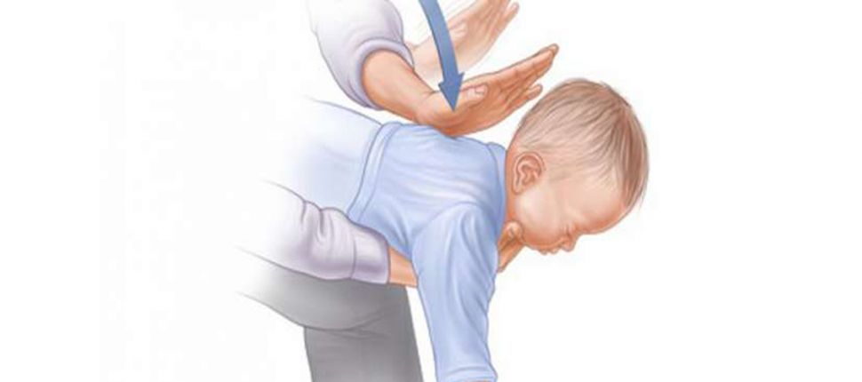 إذا ما اختنق الطفل الرضيع، وغالباً يكون ذلك بتناول أشياء صغيرة، كالعملات المعدنية أو أزرار الملابس أو قطع الألعاب أو الفشار أو غيرها، مما يجده على الأرض ويلتقطه لكي يضعه مباشرة في فمه، فإنْ سد مجرى النفس يُمثل ذلك خطورة على حياته. ودماغ الطفل الرضيع يتأثّر سريعاً بتوقّف التنفس وعدم تزويده بالأوكسجين، وتحديداً بعد أربع دقائق من حصول ذلك. ولذا فإنّ التصرف الإسعافي السريع والسليم مهم في هذه الحالة.