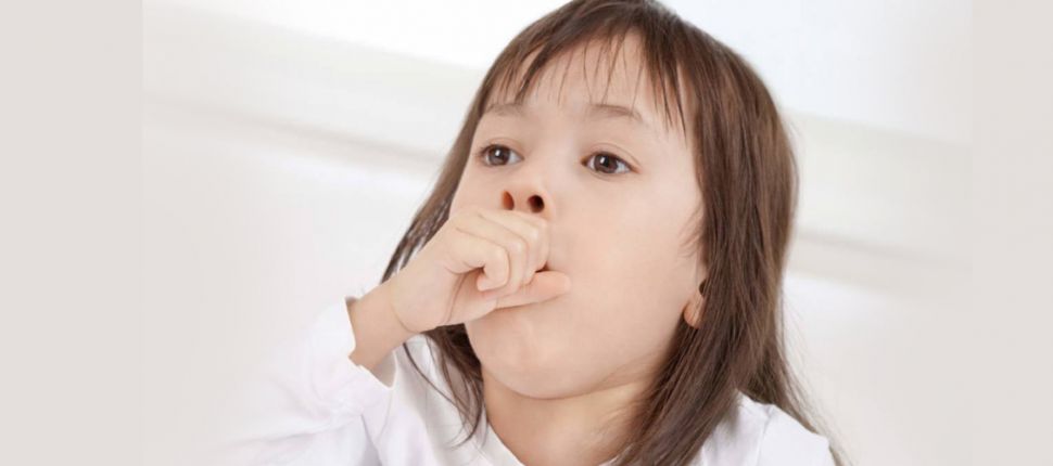 - سعال جاف غالباً ما يكون مصحوباً ببلغم أصفر أو مائل للخضرة يتقيؤه الطفل بعد الرضاعة.