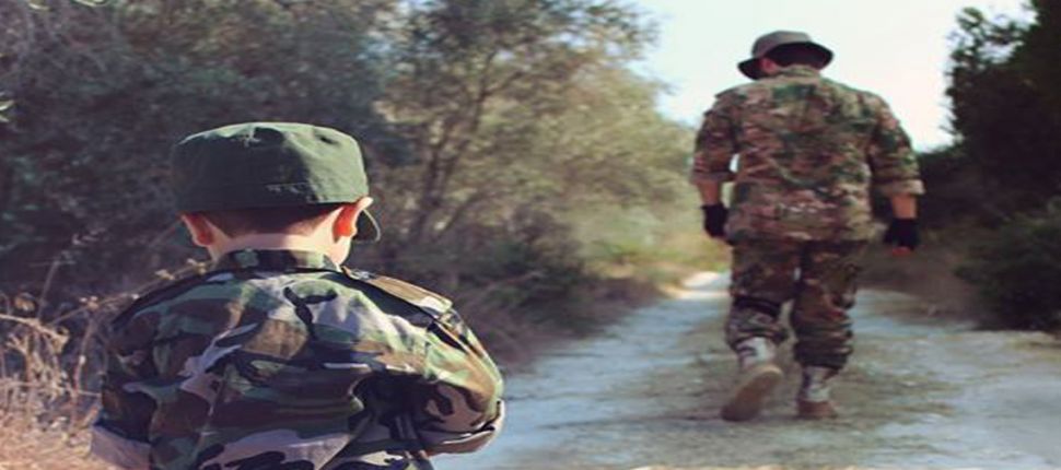 فكان بين الفينة والأخرى يرتدي بزّة أبيه ويحمل سلاحه".