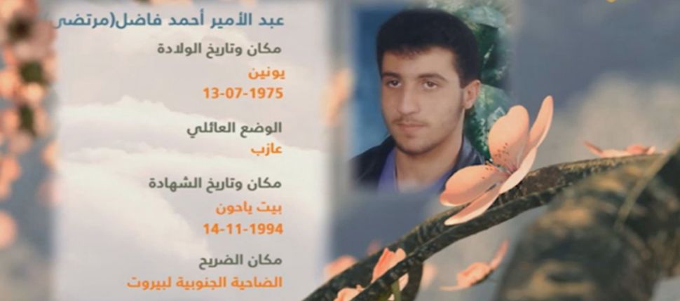 تطفو الوداعة الآسرة على وجهه، كأنها وردة بيضاء على صفحة مياه نقية. عبد الأمير، الفتى الذي لبّى نداء الوطن، وحمل بندقيته باكراً ليكون من الرجال الأشداء على الكفار، الرحماء بينهم. في منطقة حي السلم في الضاحية الجنوبية لبيروت، ولد ونشأ عبد الأمير ضمن عائلة ملتزمة، كان همّ ربها تأمين قوت عياله وتربيتهم على الدين الأصيل ونهج الإمام الخميني قدس سره.. فانطوت أيام طفولته بين المدرسة والمنزل ومركز كشافة الإمام المهدي عجل الله تعالى فرجه الشريف حيث فرد جناحيه للمستقبل الواعد، عصفوراً صغيراً لا يكاد يعرفُ من الدنيا إلا أياماً تقلّب أياماً، قبل أن يكبر ويصبح نسراً لا يحلق إلا فوق أعلى التلال ليدكّ مواقعها الحصينة..